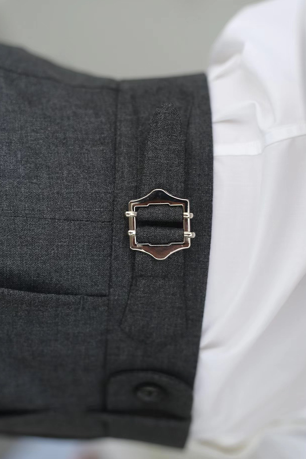 Ateliê Maste - Calça em lã merino, super 120's 17.75 micron, com pregas, barra italiana e ajustadores laterais - Cinza Maste