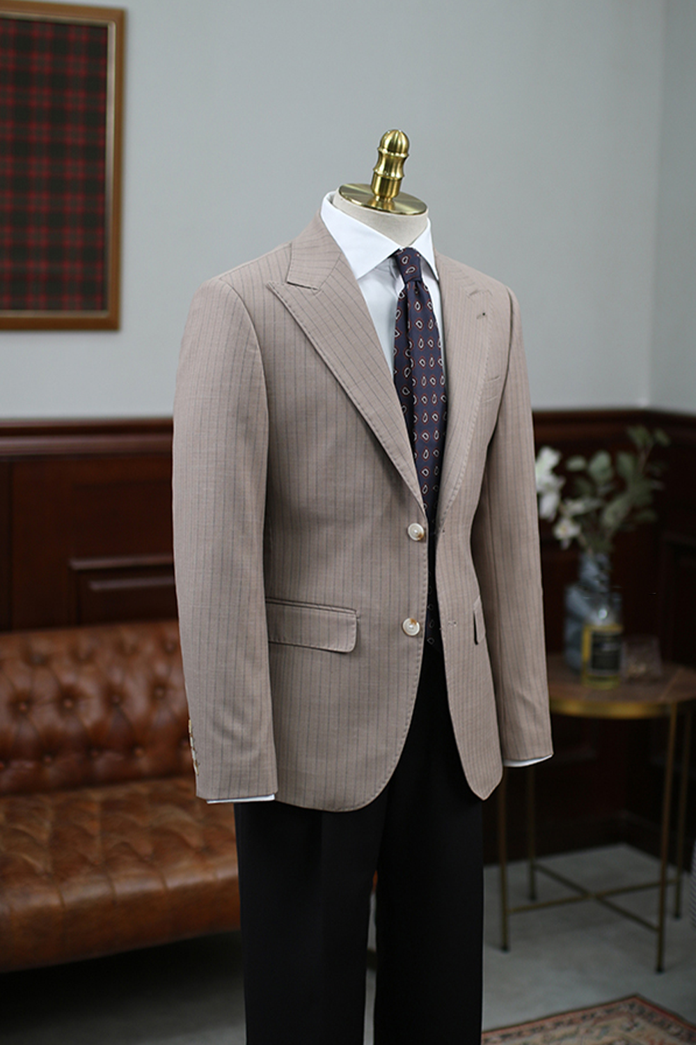 Blazer com riscas, single breasted com lapela peak - Taupe riscado HNR