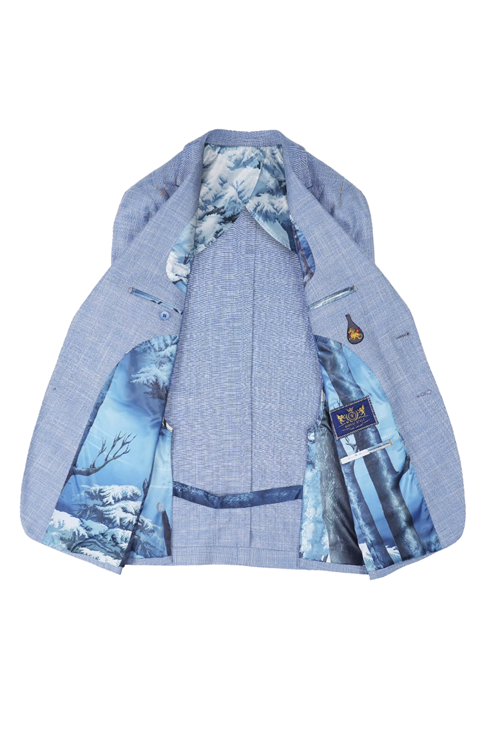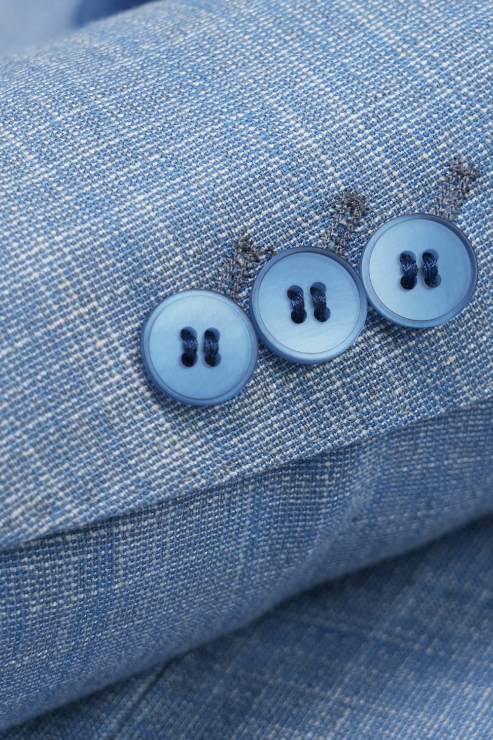Blazer desestruturado single breasted, em lã, linho, seda e fibra de bambu, com lapela notched - Azul céu BPN