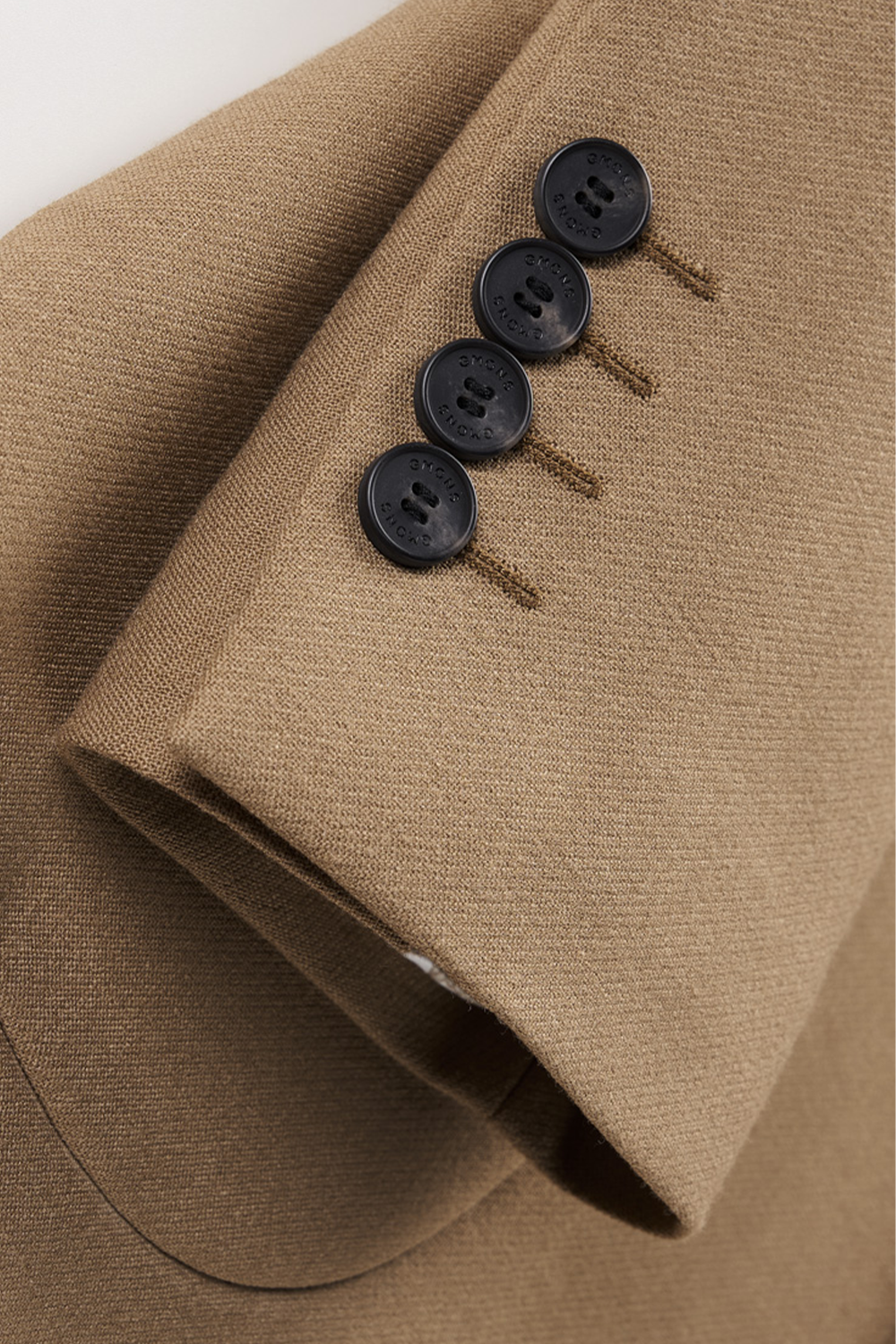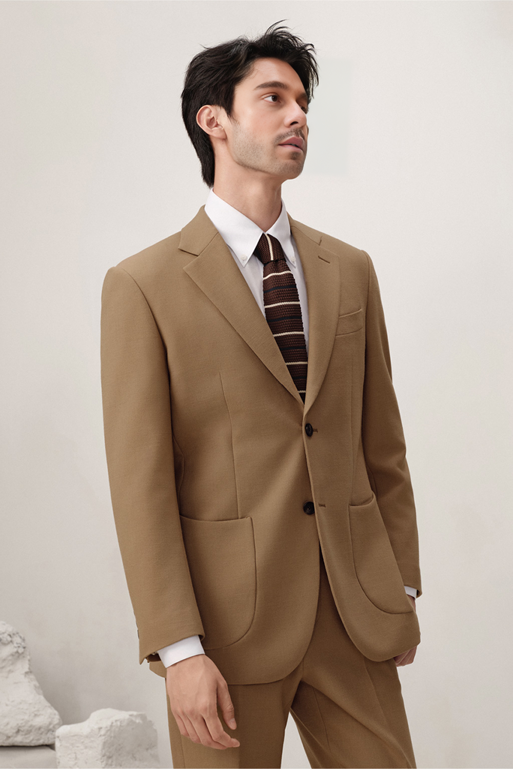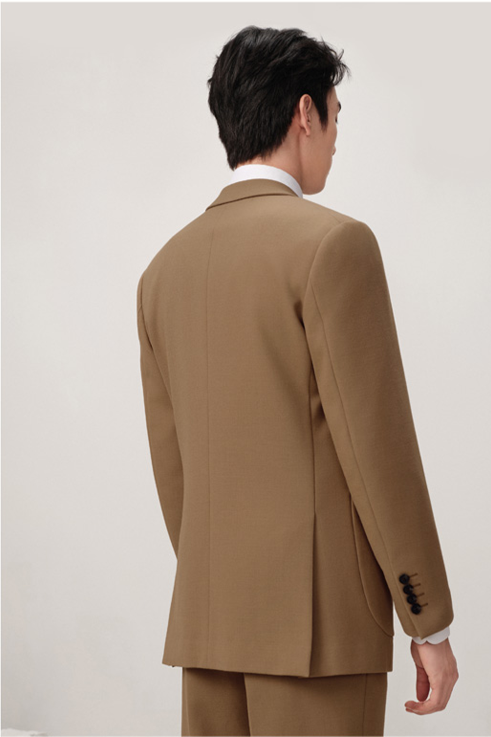 Costume single breasted, em lã tropical com elastano, lapela notched - Fluffy Caramelo