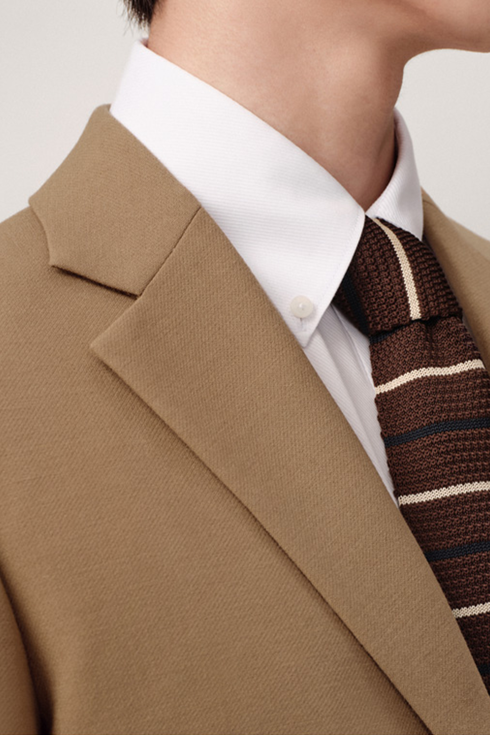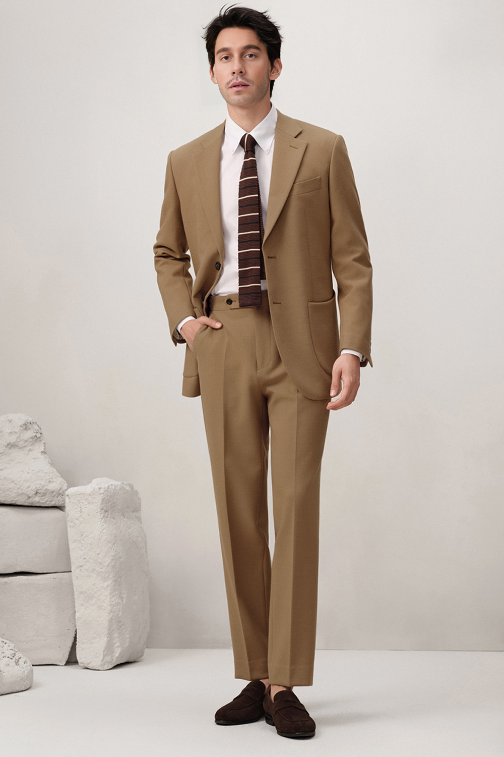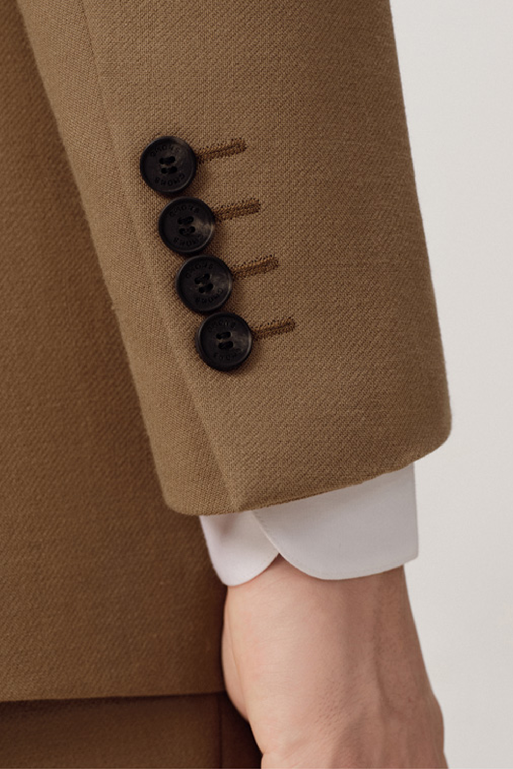 Costume single breasted, em lã tropical com elastano, lapela notched - Fluffy Caramelo