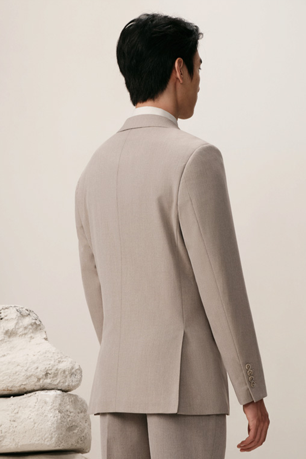 Costume single breasted, em poliviscose com elastano e lapela lapela peak - Cor Marfim