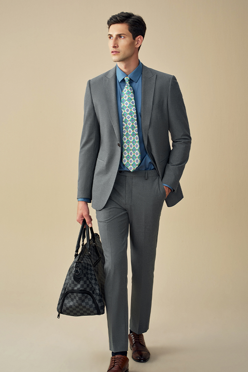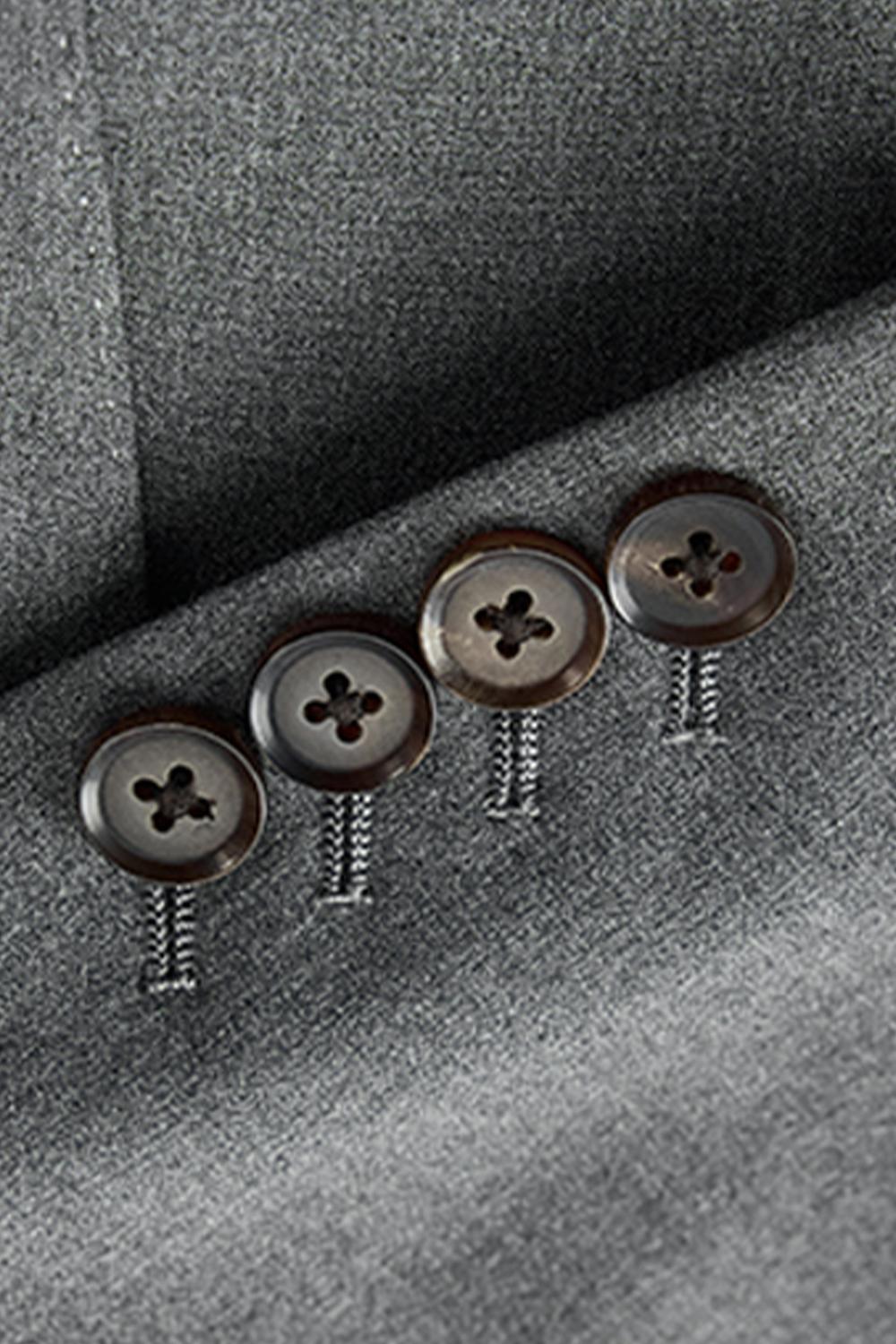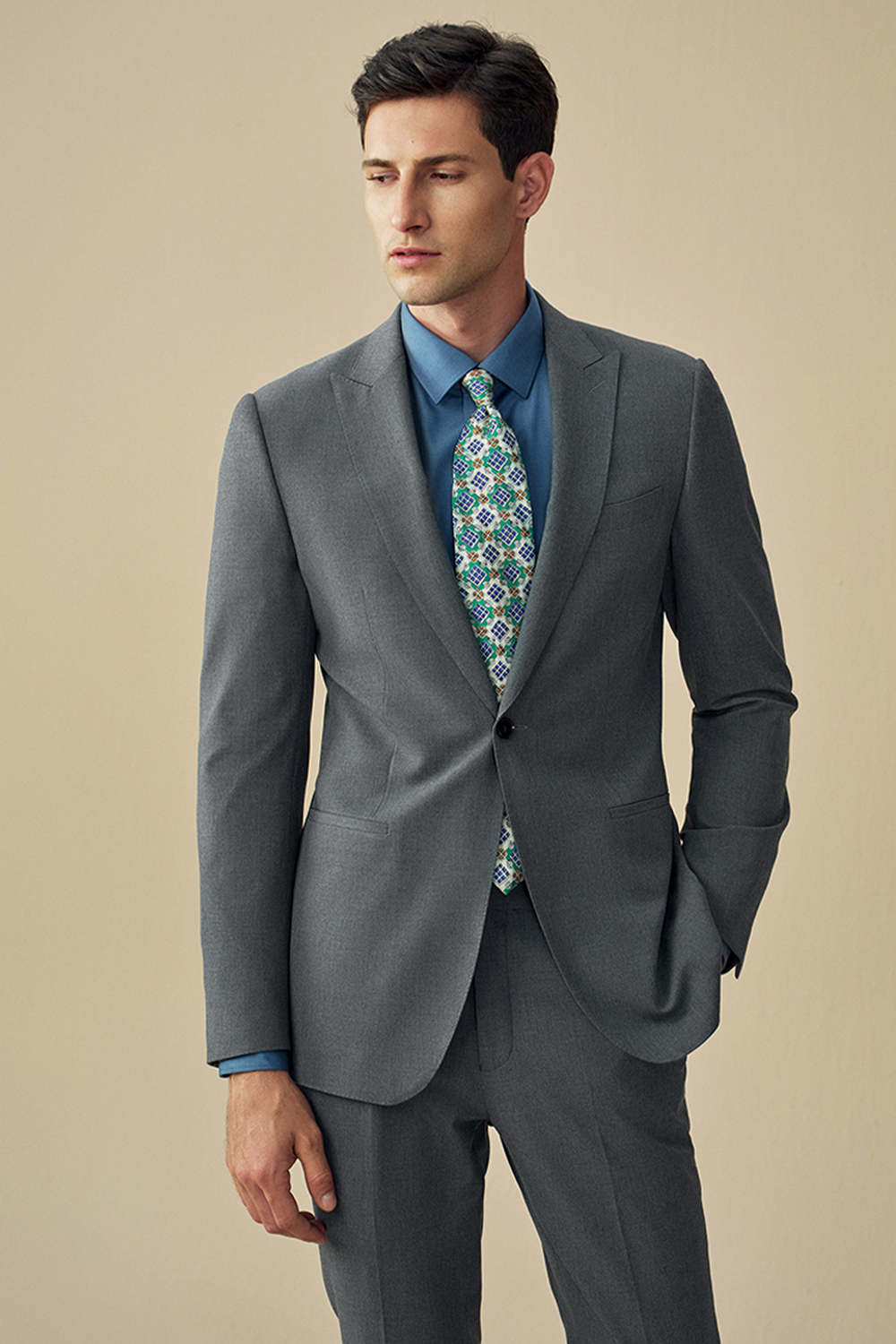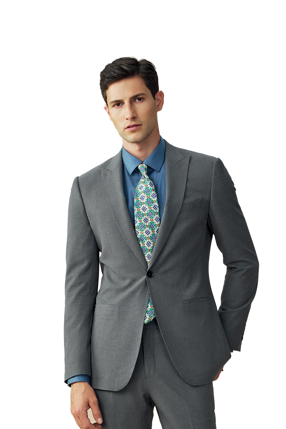 Costume single breasted, em polilã e elastano com lapela peak - Cinza