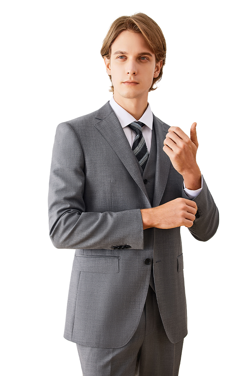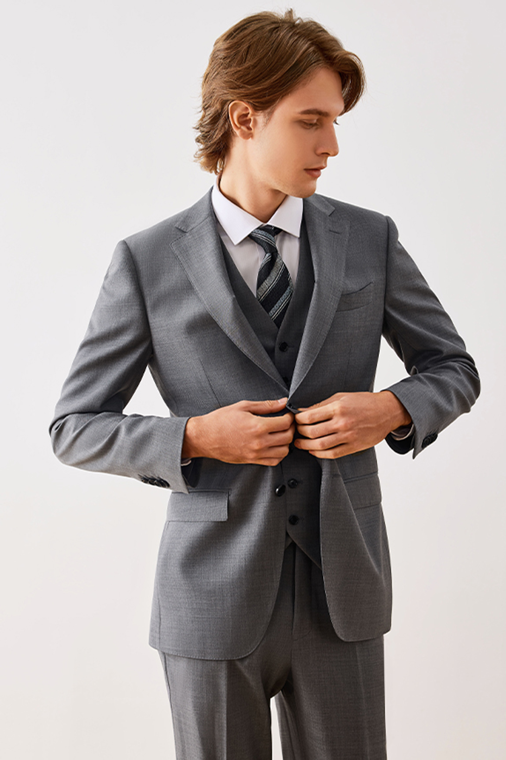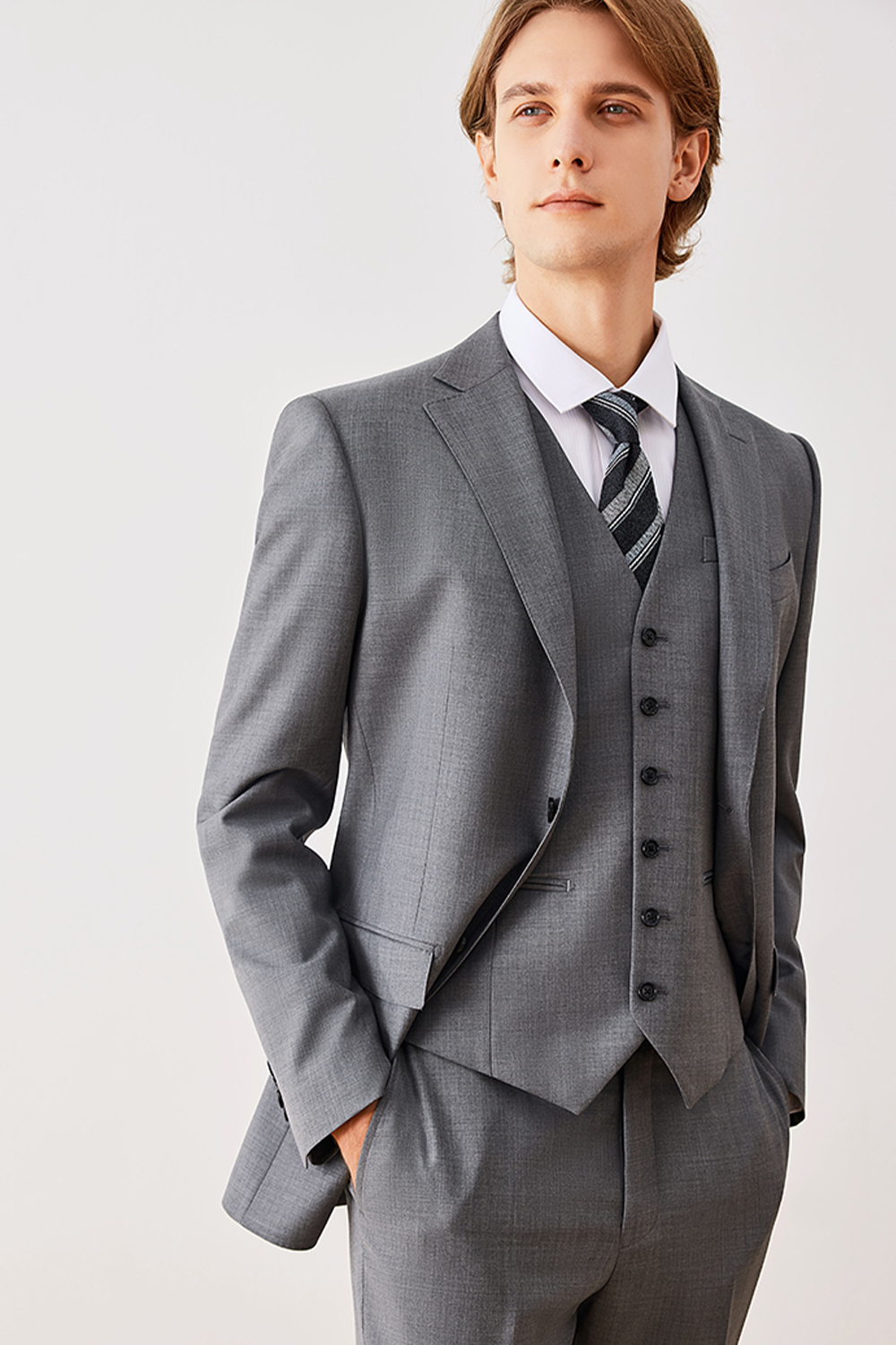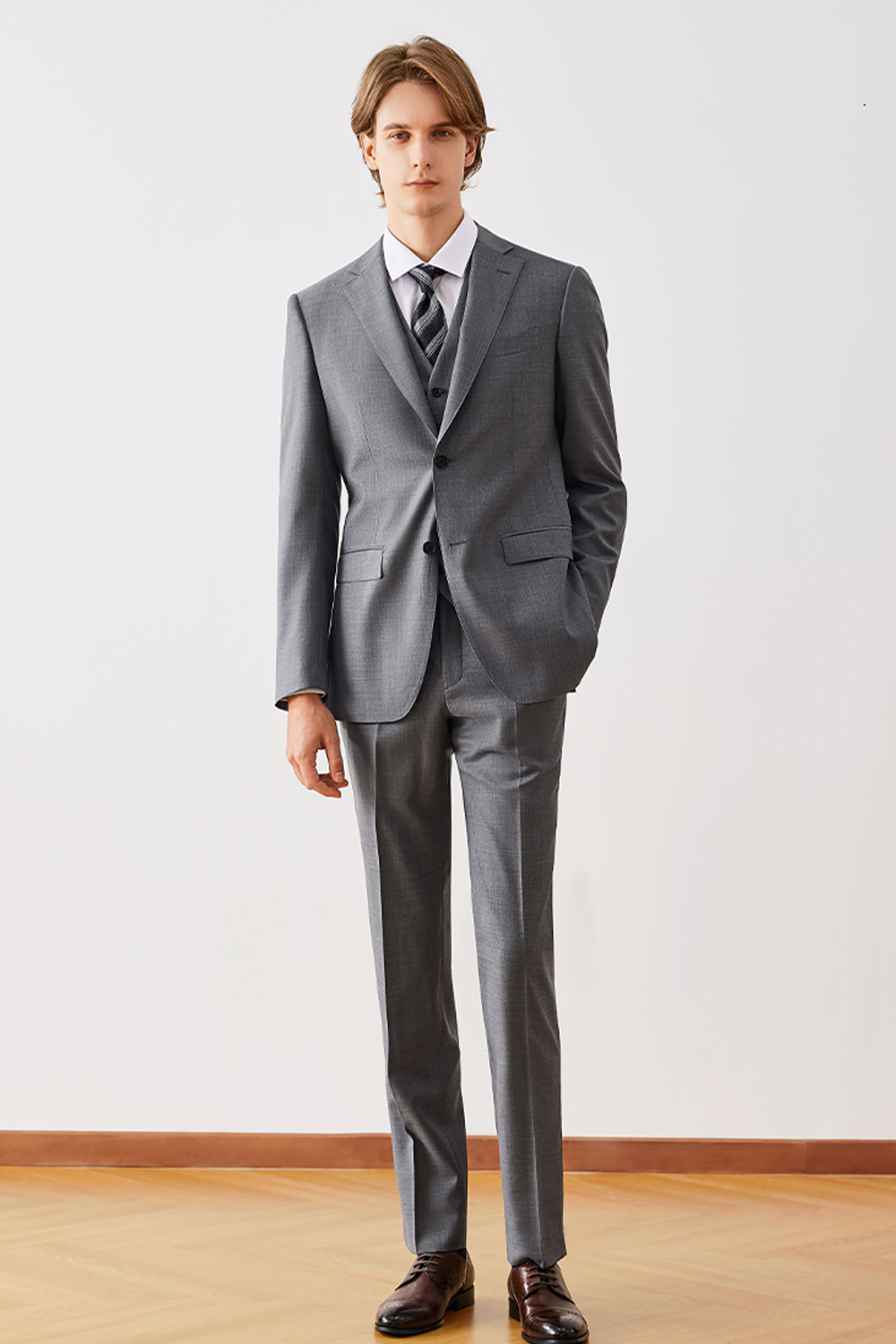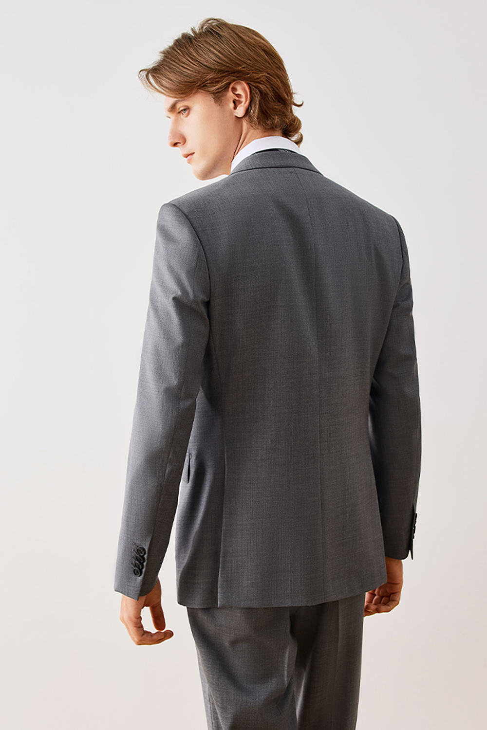 Costume single breasted, em lã tropical, com lapela notched - Cinza