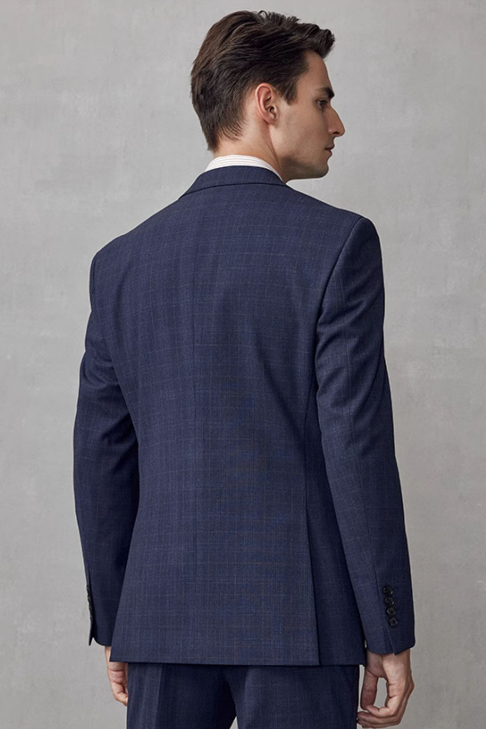 Costume single breasted em poliviscose, com lapela peak- Windowpane azul