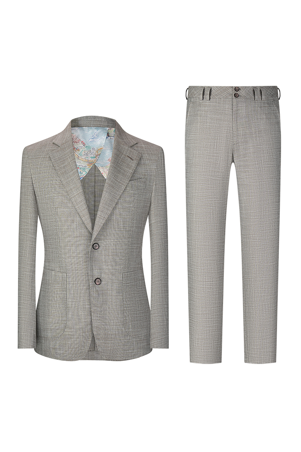 Costume desestruturado single breasted, em lã, linho, seda e fibra de bambu, com lapela notched - Cinza Bambu - BPN