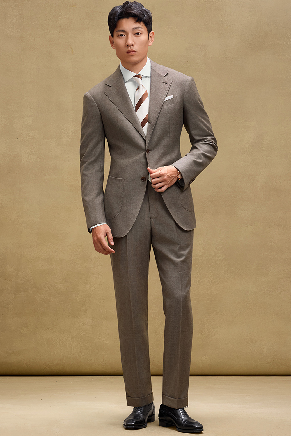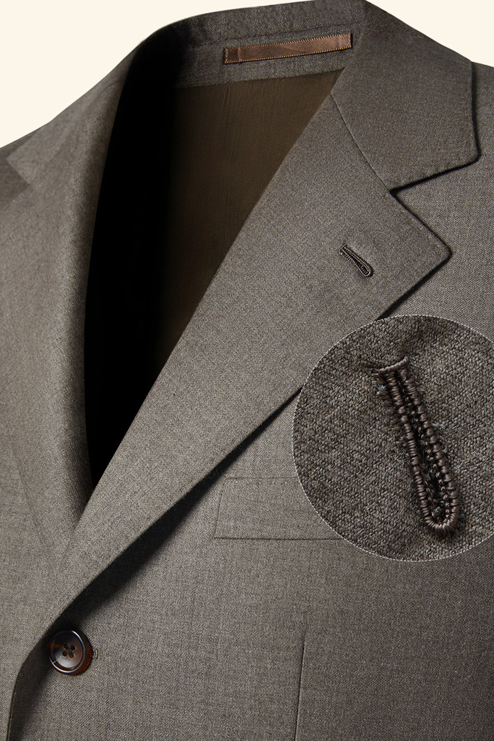 Lanifício Dino Filarte- Costume single breasted, half canvas, em lã flanelada super 110 18.25 µ , lapela notched - Castanho SKA