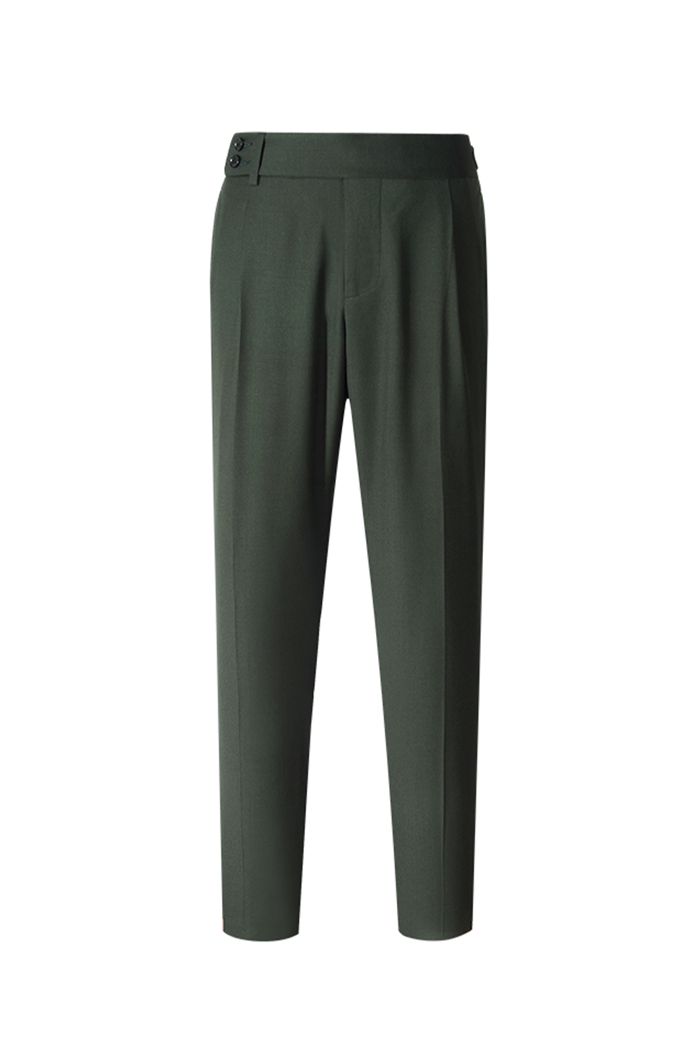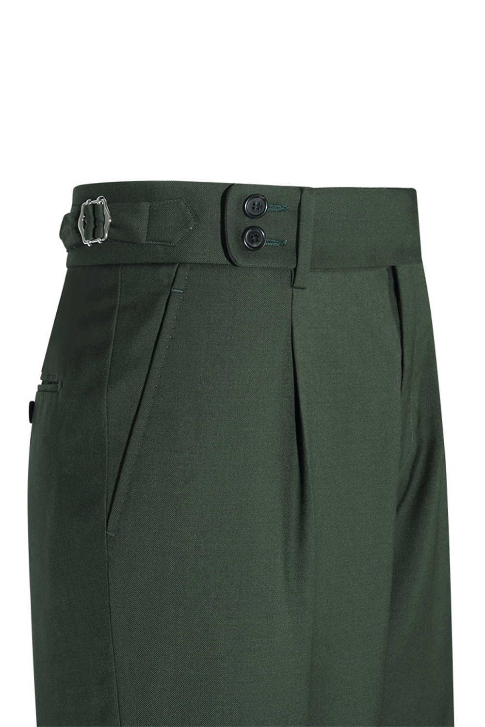 Lanifício Nobility Suitings - Calça em modelagem italiana, em lã merino 130'S, 17.25 µ, cintura alta, com ajustadores laterais - Verde