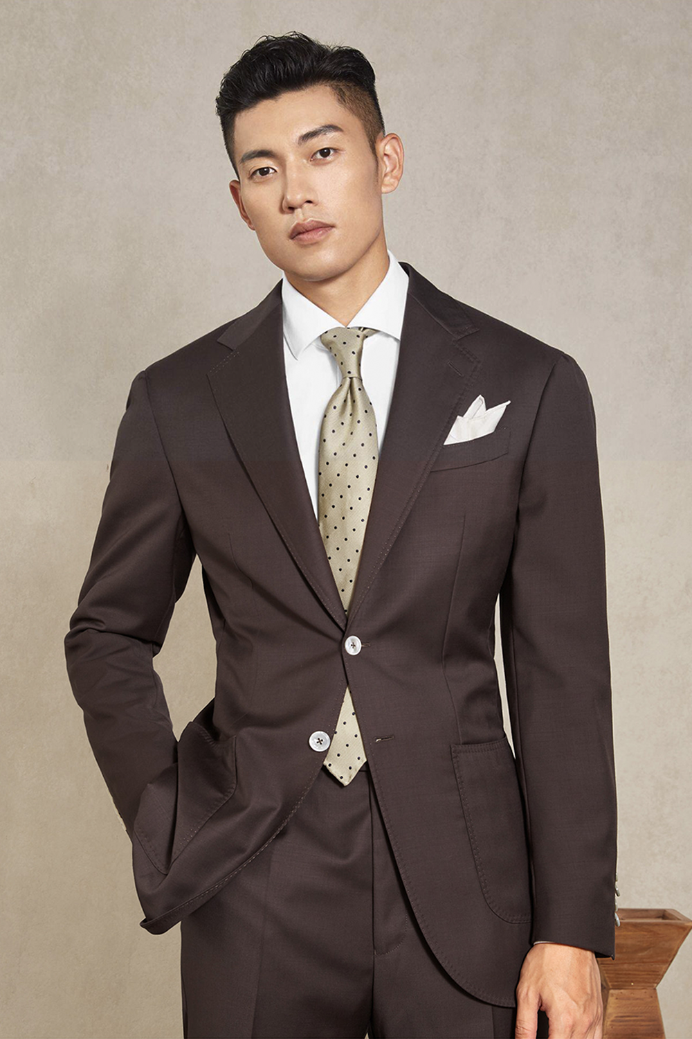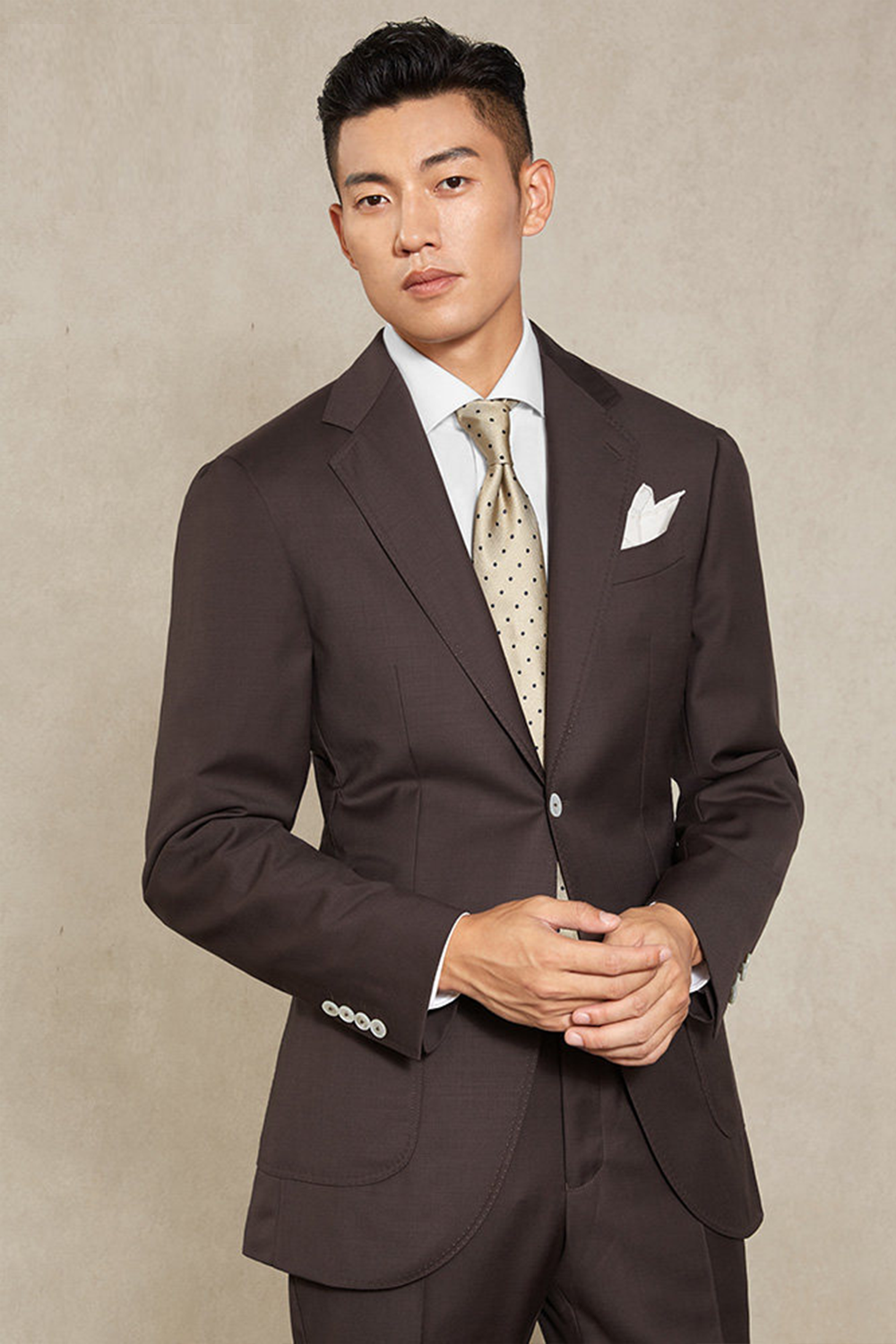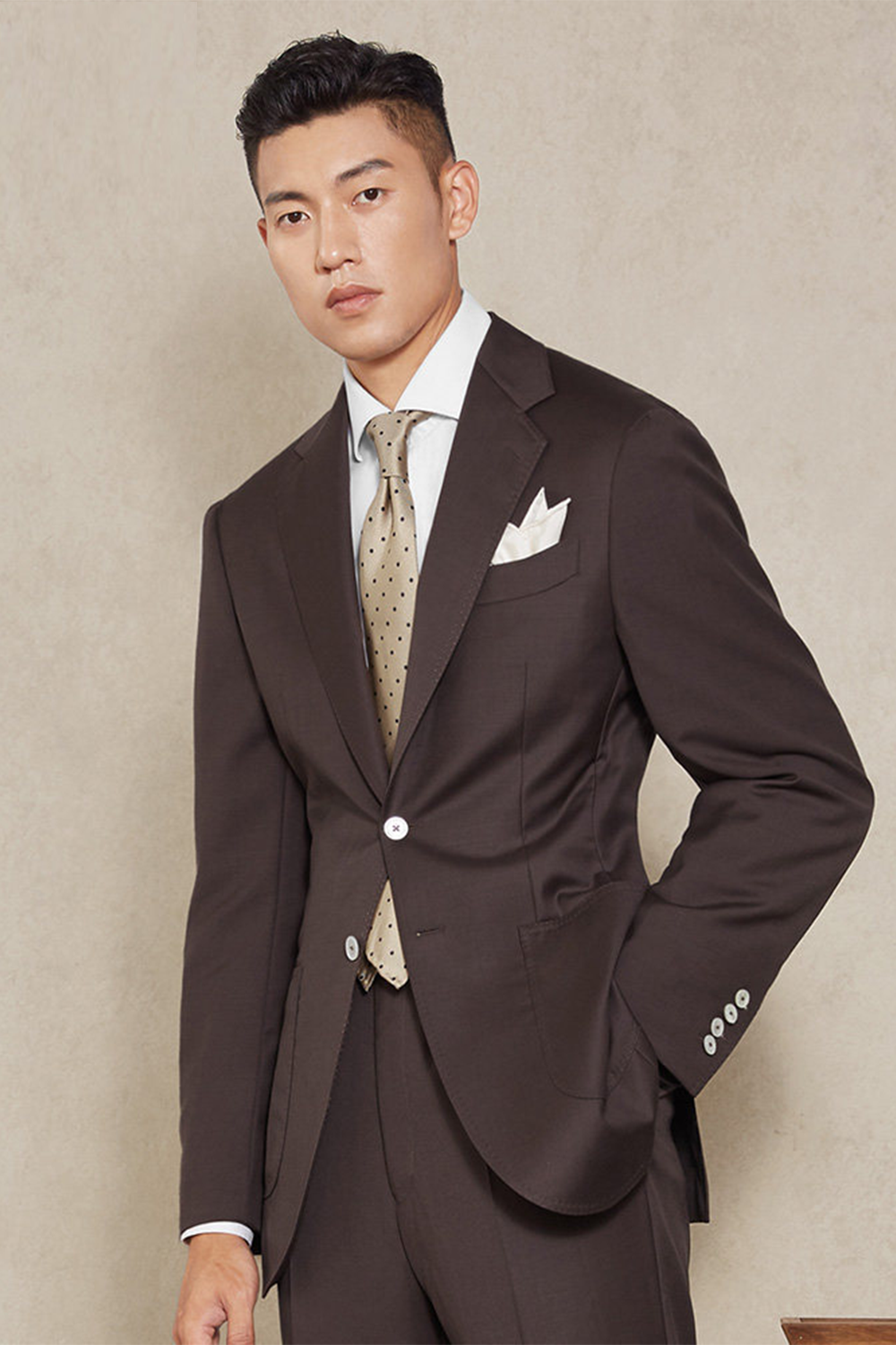 Lanifício MT GERALD - Costume single breasted, half canvas, em lã merino super 110 18.25 µ , lapela notched - Marrom SKA