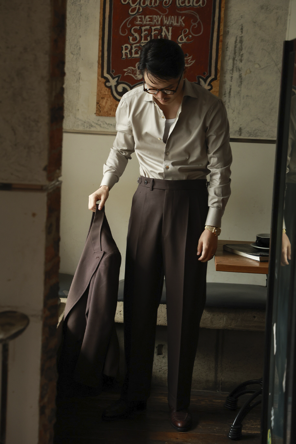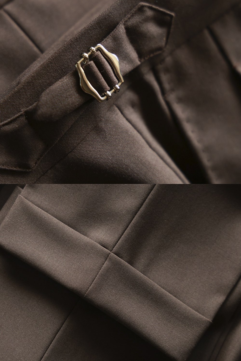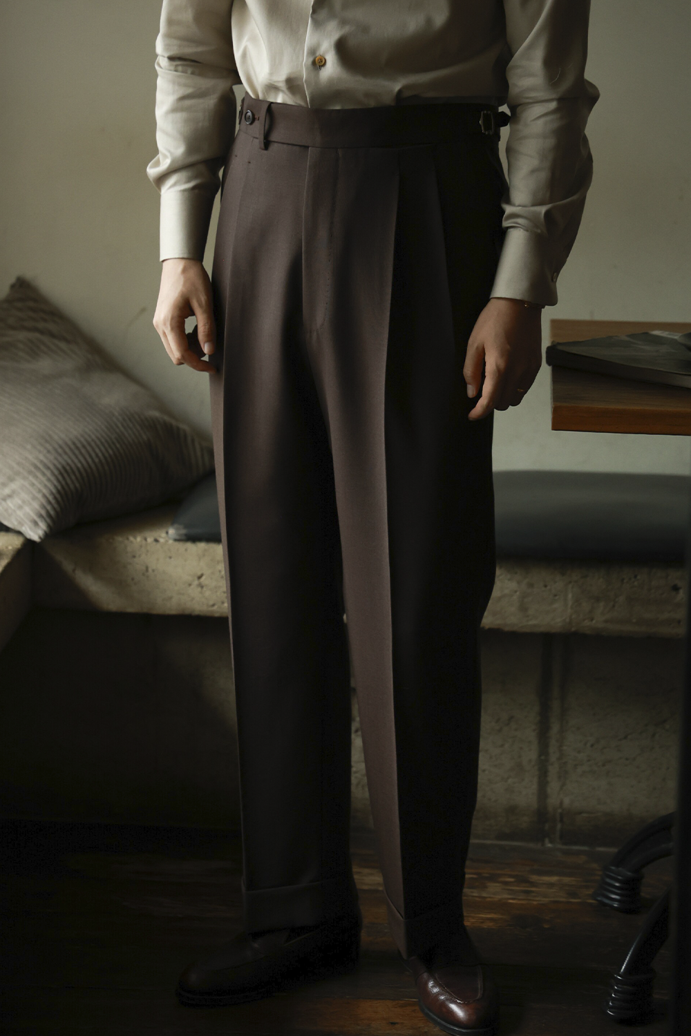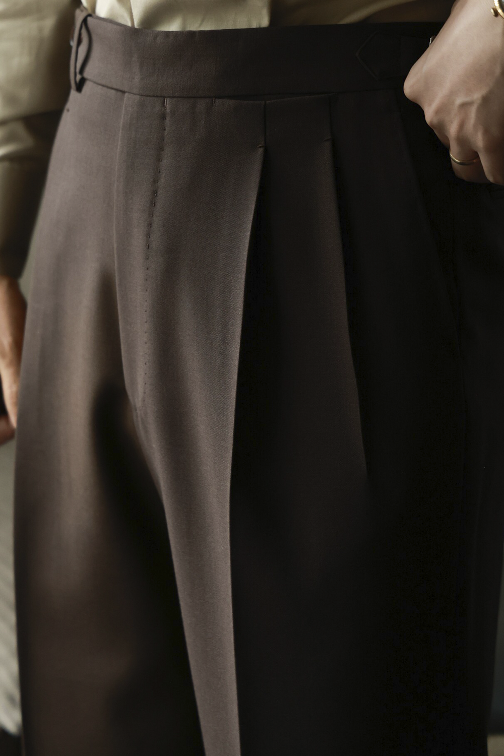 UGLENTLE - Calça em lã merino, super 120's 17.75 micron, com pregas, barra italiana e ajustadores laterais - Marrom UGT