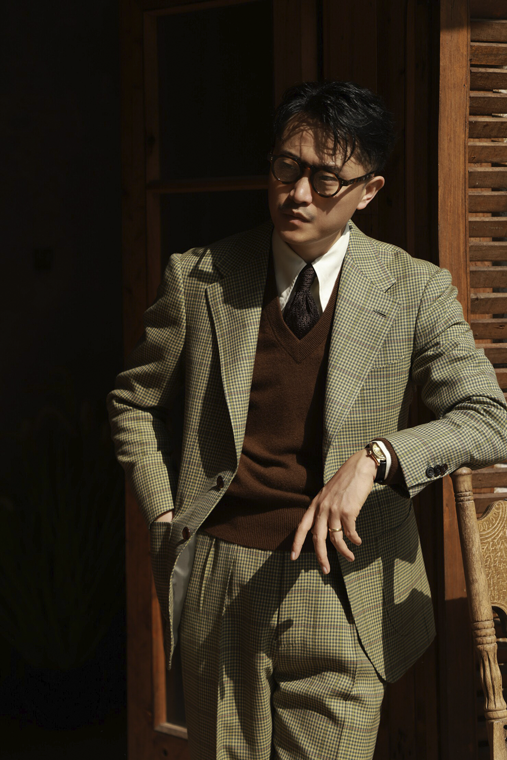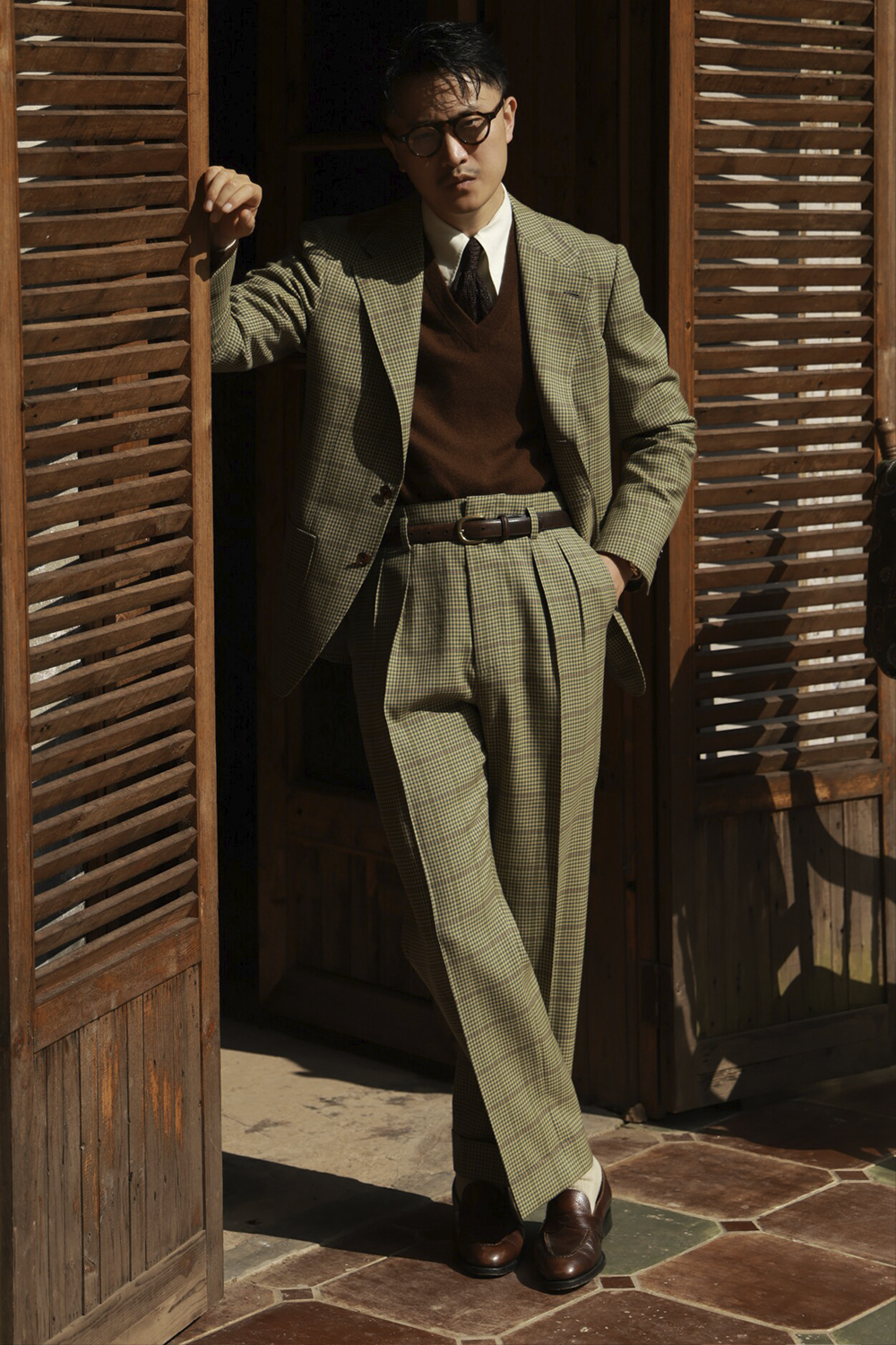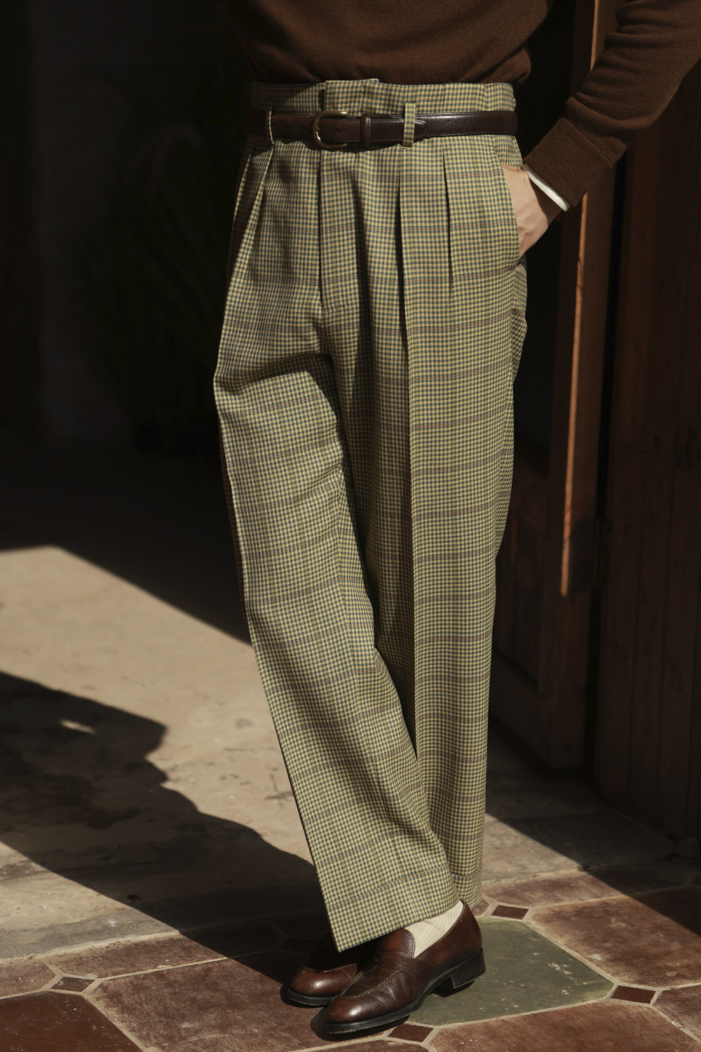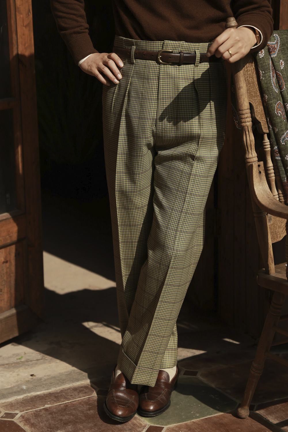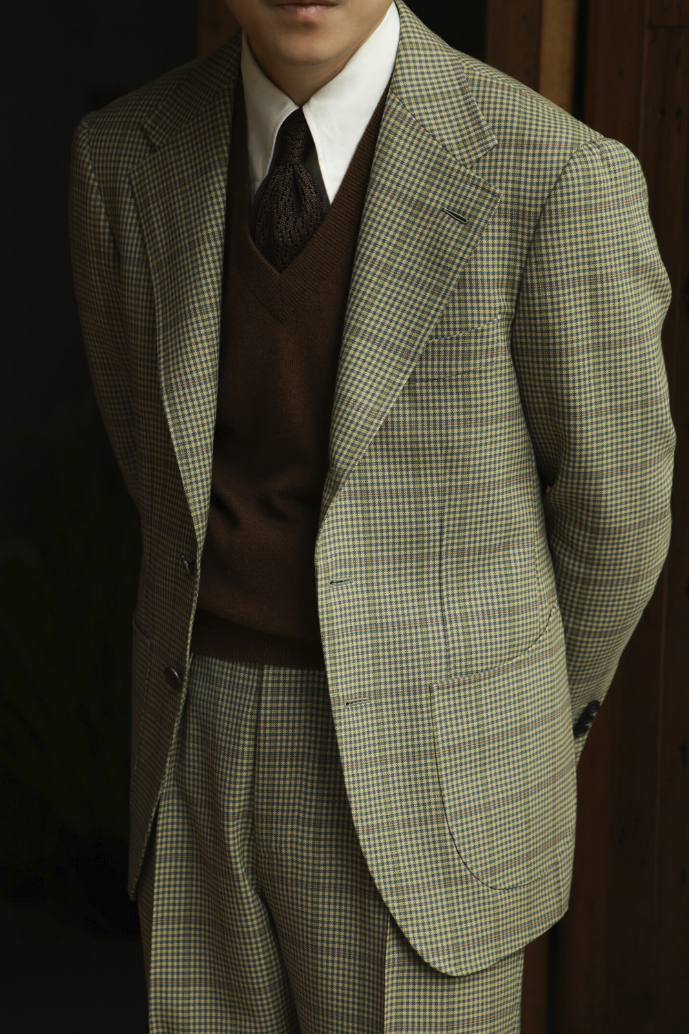 UGLENTLE - Costume single breasted, half canvas, lapela notched, em lã merino super 100 18.75 µ, - Verde Oliva padronagem Glen Check UGLENTLE Time Travel Series